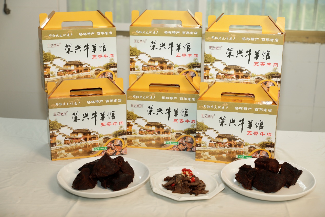作为“新农人”,同时也是桥林五香牛肉传统技艺的代表性传承人,王艳萍在展位旁忙碌而有序地招呼着顾客。看到大家对自家牛肉如此喜爱,她眼中满是欣慰,趁着间隙,向周围的人介绍起来:“我们家都是挑选肉质紧实的农村散养水牛肉,这种牛在自然环境中长大,吃的是天然草料,肉质鲜嫩又健康,所以做出来的卤牛肉口味才好,让人吃过就忘不掉。”