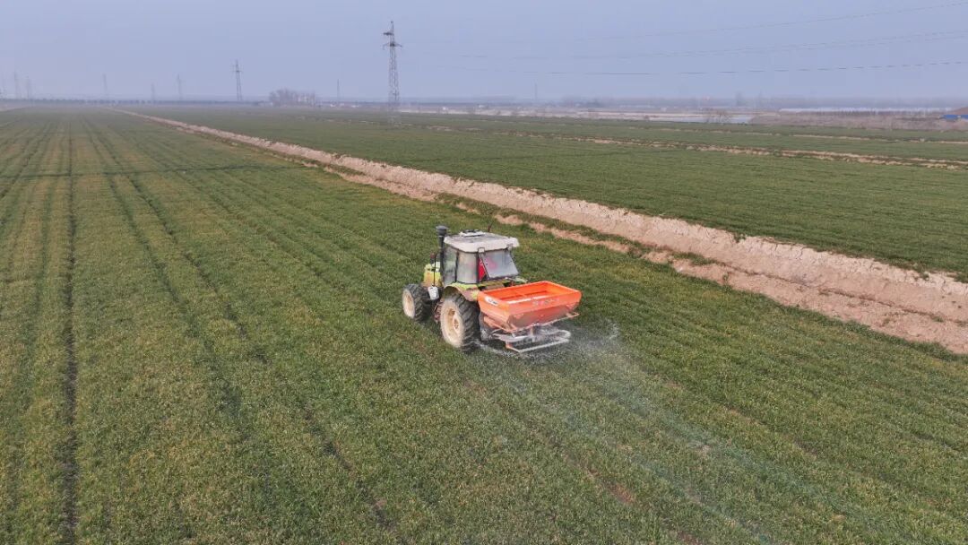 在粮食作物越冬管护方面,苏垦农发滨淮分公司聚焦6.2万亩秋播小大麦安全,以“因苗分类、按需补给”为核心制定科学施肥方案,精准应对不同苗情需求。其中,西瓜茬小麦重点推进“捉黄塘促平衡”,长势均衡的稻茬麦田每亩施用氯基复合肥,苗情较差的田块则采用“复合肥+尿素”组合模式,通过“多次少量”的精细化管理攻克黄苗弱苗难题。截至1月18日晚,该分公司麦田撒肥任务全面完成,同步推进清沟理墒与病虫防控工作,组织人力疏通沟系避免淤塞,农技人员深入田间动态监测病虫草害,备足应急物资确保冻害及时处置,为后续作物生产奠定坚实基础。