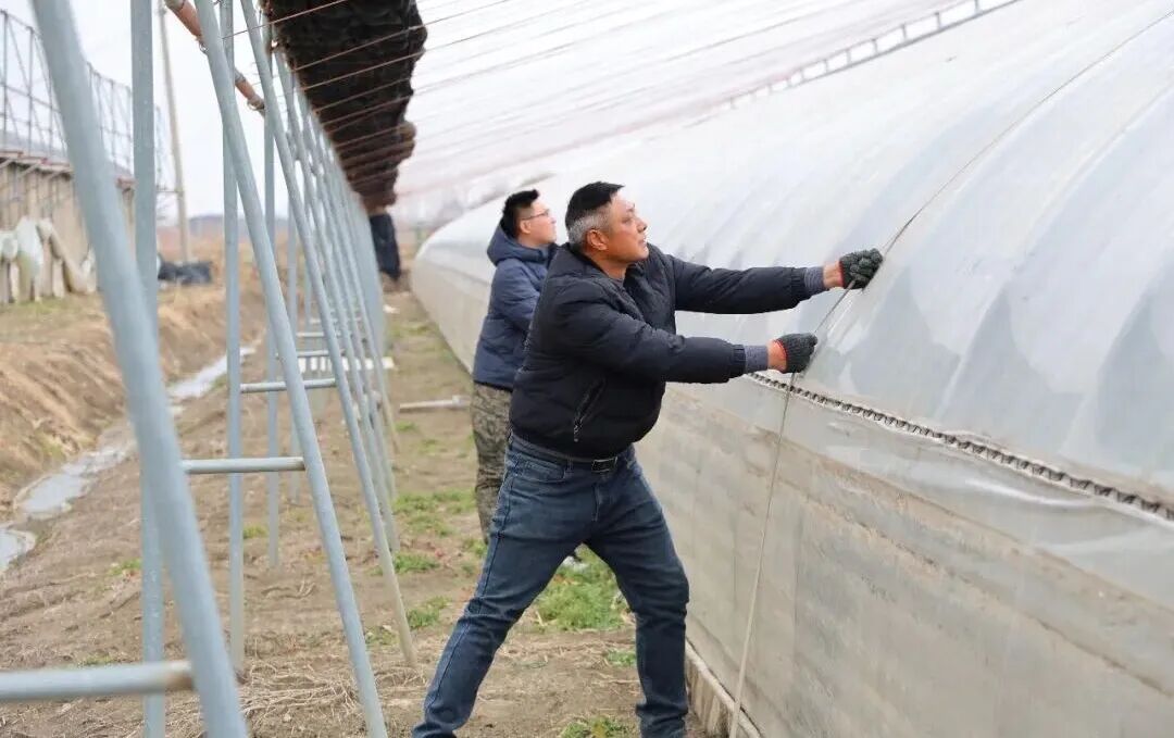 三河农场将防护重点聚焦草莓产业,以“早准备、严落实、保安全”为原则,组织工作人员放弃休息时间,于1月17日至18日全面开展草莓大棚防寒加固工作。工作人员对大棚钢架连接点、棚膜松紧度进行拉网式排查,逐一拧紧松动卡扣,仔细检查卷帘设备与照明设施,确保大棚能够承受风雪压力,全力守护草莓生产安全。