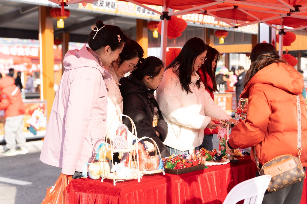 不远处的“手工豆香·匠心传承”展台前,人气同样高涨。现揭的豆皮还冒着热气,薄如蝉翼。市民们捏一角送入口中,绵软里带着筋道,满口都是大豆原本的醇甜,有人一口气买了五摞:“回去凉拌、炒菜,都是年夜饭桌上的抢手菜!”