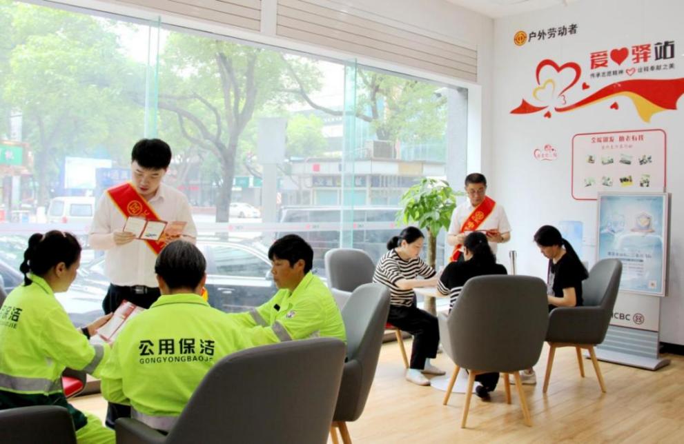 用心服务,打造有温度的银行。工行无锡分行不断深化“工行驿站”惠民服务品牌,优化体验,打造智慧暖心厅堂。网点内,“工行驿站”共享服务区为市民提供多项便利。“累了能歇脚,饭冷能加热,渴了有水喝,工行的服务很贴心。”环卫工人李阿姨说。无论寒暑,“工行驿站+暖心服务”都为环卫工人、快递员等户外劳动者提供温馨港湾,将工行温度传递到每一次服务中。