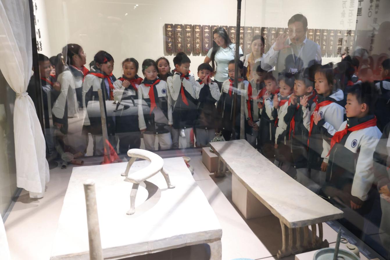 10月28日,南京市六朝博物馆迎来一群“小小策展人”。力学小学二年级7班的47名同学,在班主任孙老师、副班主任达老师带领下,开展了一场以“触摸六朝文物、争做文化使者”为主题的“教室在窗外”拓展体验课程。