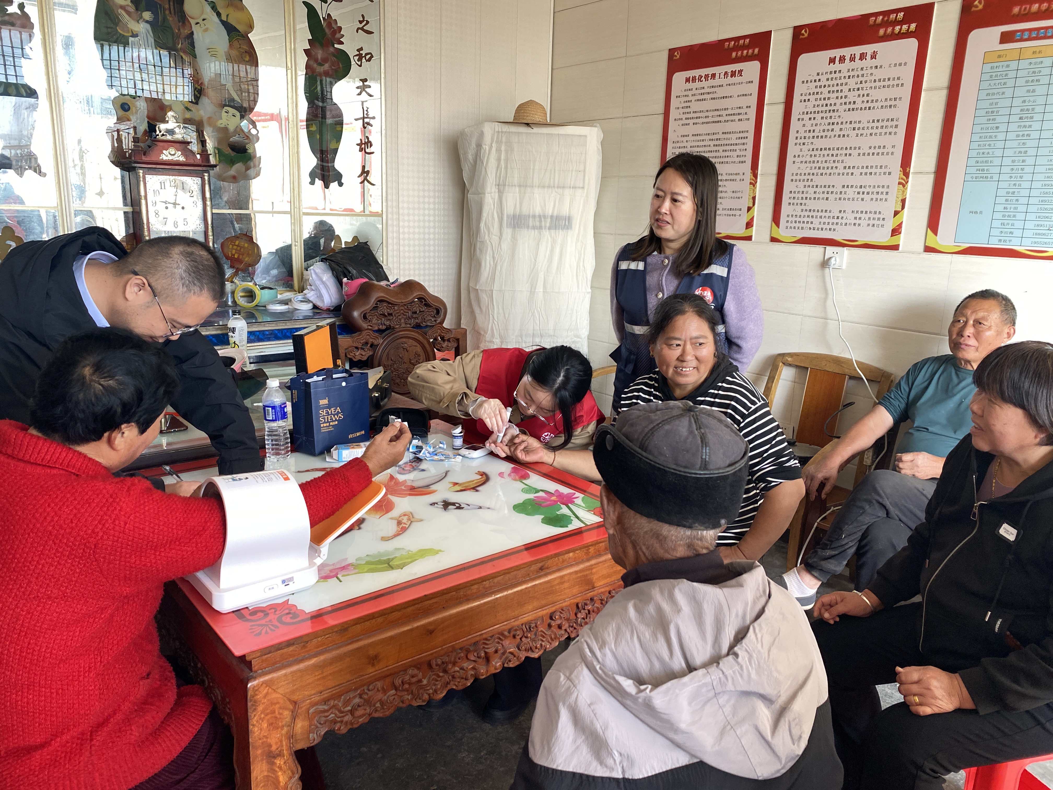 现场,志愿者们带着血压计、血糖仪到网格驿站进行“健康义诊”。医护人员与志愿者分工协作,为老年群众免费测量血压、血糖,仔细记录每位老人的检测数据。