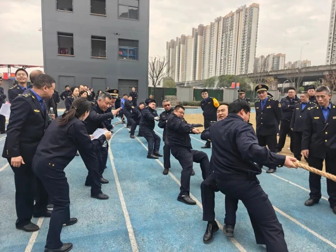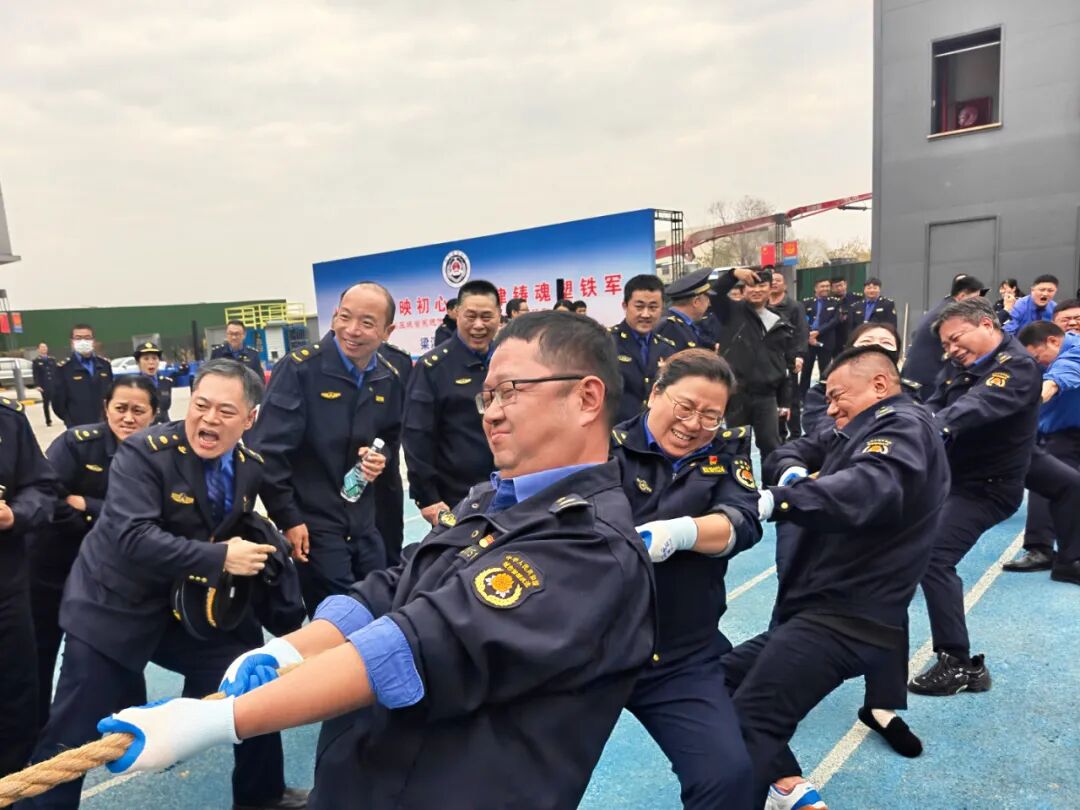 随着哨声响起,拔河竞赛正式开战!队员们紧握长绳、脚蹬大地、身体后倾,使出浑身力气奋力拉扯。场外加油声、呐喊声此起彼伏,每一次僵持、每一次发力,都是团队凝聚力的 “具象化” 呈现,将现场氛围推向高潮。