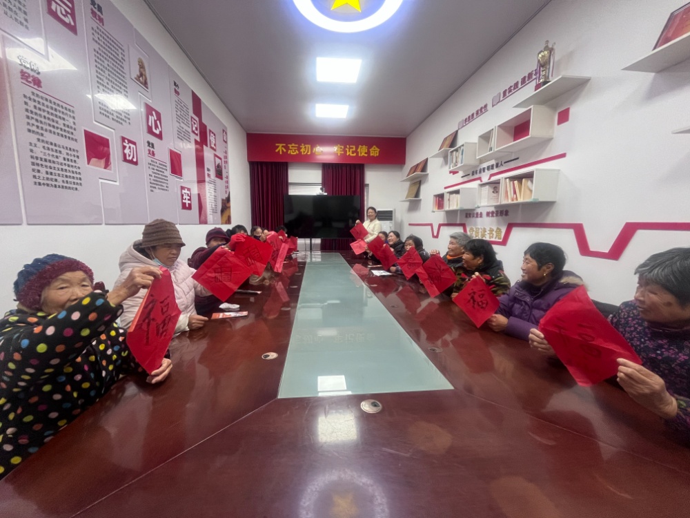 活动现场,笔墨纸砚早已整齐备好,挥毫泼墨,一笔一画间,将对新春的美好期许化作苍劲有力的“福”字、寓意吉祥的福字。红纸翻飞间年味拉满,老人们围站一旁欣赏各个人的书法,大家捧着红彤彤的福字与春联,脸上满是幸福笑容,这份手写的祝福,既承载传统文化韵味,更传递着村集体对特殊群体的牵挂、邻里间的暖心情谊。