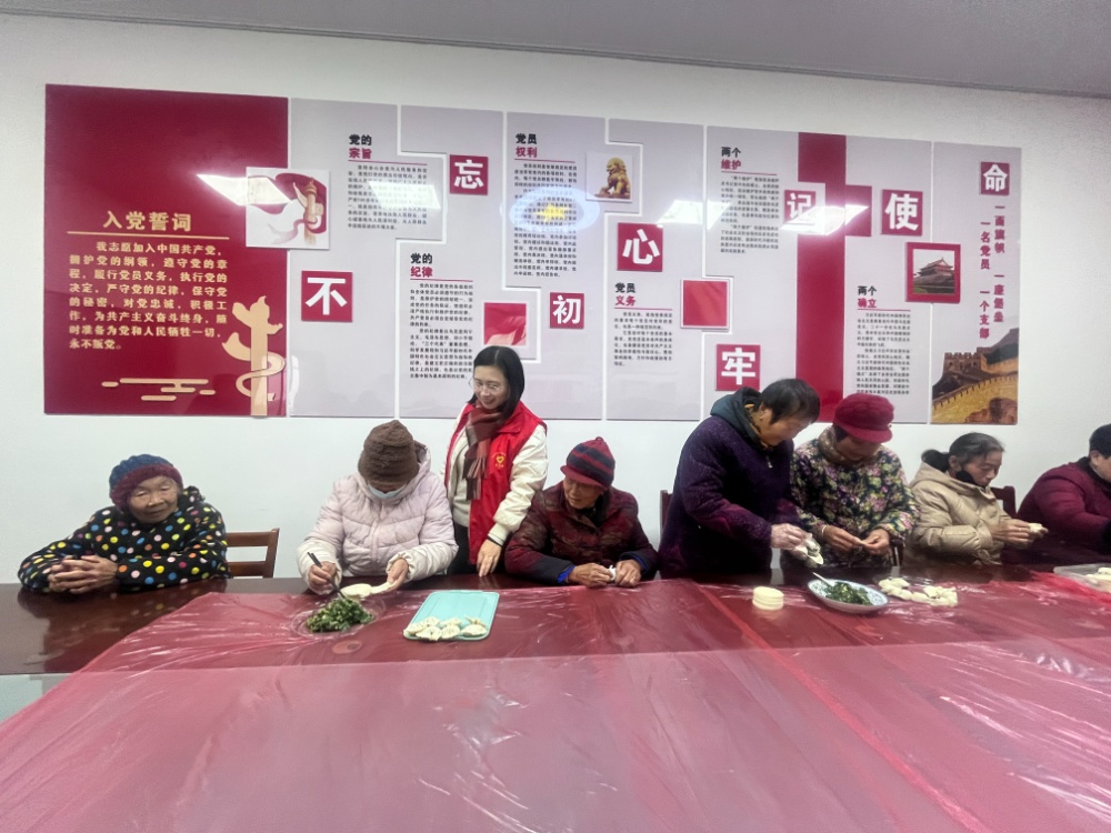 笔墨飘香过后,包饺子环节热闹开启,失独家庭、孤寡老人大家围坐一桌,分工协作、默契配合,有的擀皮、有的包馅,有的摆放食材、递拿工具,她们一边聊着家长里短,一边巧手翻飞,一个个形态饱满的饺子很快摆满托盘。当热气腾腾的饺子出锅,大家第一时间给老人盛上,看着老人们吃得舒心,现场满是温馨暖意。小小的饺子,包起的是情,暖的是老人的胃,更暖的是所有人的心。