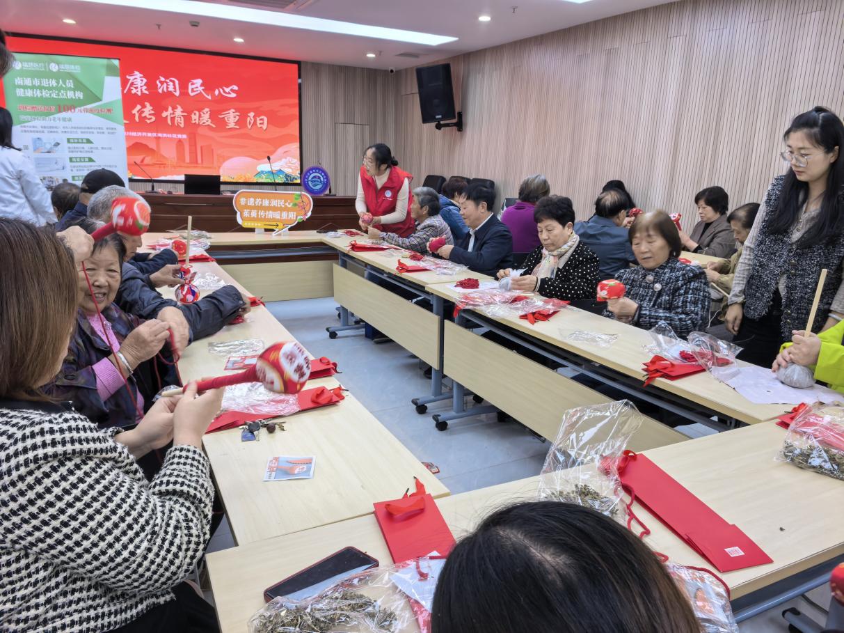 金菊吐蕊,重阳情浓。为丰富老年居民的精神文化生活,营造温馨和谐的节日氛围,近日,崇川经济开发区开展了“茉莉花开·艺通江海”之“金秋康养润民心 茱萸传情暖重阳”重阳节主题活动。辖区老年居民、特殊家庭和老干部志愿者齐聚一堂,在非遗体验与健康养生的交融中共迎暖心重阳。