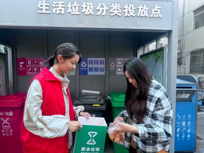 作为垃圾分类工作的“铁脚板”,社区工作人员成稳及时疏通工作堵点,精准对接各方资源,为这支多元队伍凝聚起强大的行动合力。万科、科盛等物业负责人积极响应,调整保洁员错峰上班、确保在岗。微网格员、居民志愿者作为“前哨探头”,凭借人熟、地熟、情况熟的优势,承担起日常巡查与宣传引导的职责,确保问题第一时间发现、政策第一时间传达。党员充分发挥先锋模范作用,区住建局退休干部许恋斐、南通市税务局顾杰、区审计局冒小燕、崇川经济开发区社管办高劲松等居民主动亮明党员身份,不仅带头在家庭和邻里间严格执行分类标准,更利用业余时间化身“桶边督导员”与“政策宣讲员”,让“红色力量”在垃圾分类一线熠熠生辉。南通第一中学高三(6)班团支部发起“厨余垃圾我来分”实践活动,青年学子深入社区协助精准分拣,以“一个学生影响一个家庭”的方式构建环保链条。