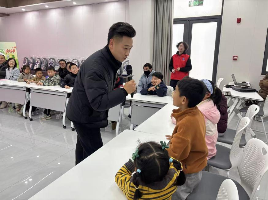 阅读推广人秦文杰率先分享自己与好书结缘的成长故事,从书中人物的成长感悟到正版书籍的优质阅读体验,以亲身经历传递“读好书、善读书”的阅读乐趣。在榜样的带动下,孩子们纷纷化身为“阅读分享官”,一年级学生李子兴同学围绕《小巴掌童话》的阅读体验娓娓道来,分享书中触动人心的经典片段,言辞真挚,赢得现场阵阵掌声。随后开展的互动答题环节,题目涵盖传统文化、民俗风情、版权知识等多元内容,孩子们踊跃举手、争相作答,大家在互动中交流知识、收获快乐,不仅为孩子们搭建了正版阅读交流的平台,也筑牢了版权保护的思想防线。