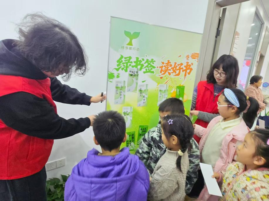 活动现场,“绿书签·读好书”签到板上密密麻麻的“绿书签”格外引人注目,孩子们用稚嫩的笔迹郑重写下“拒绝盗版、读正版好书”的承诺,一枚枚绿色书签不仅是版权保护的象征,更成为引领健康阅读的“精神旗帜”。同步设置的旧书兑换积分环节,孩子们在家长的陪同下,一同将捐赠的闲置正版书籍放入社区共享书架,让优质阅读资源循环流转,既践行了全民阅读“资源共享、全民参与”的宗旨,也让绿书签倡导的“健康阅读、正版阅读”理念落到实处。