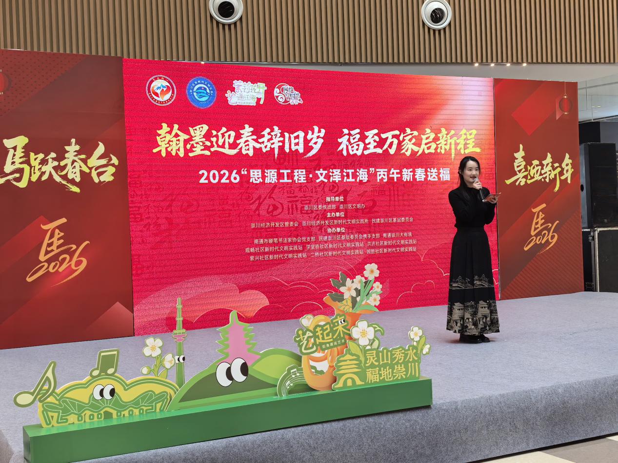 新春启序,福暖人间。2月4日下午,2026“思源工程・文泽江海”丙午新春送福活动在南通崇川大有境热闹启幕。本次活动由崇川区委统战部、崇川区文明办指导,崇川经济开发区管委会、崇川经济开发区新时代文明实践所、民建崇川区基层委员会主办,本次活动精准对接群众需求,将“送祝福”与“传文明”、“承文化”与“悟初心”有机融合,打造了一场集文化体验、文明引导、知识科普、公益服务于一体的新春盛宴。