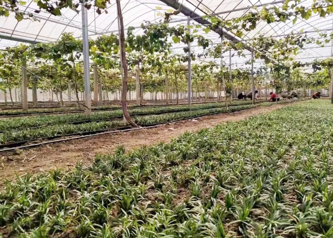 秋日时节,海安农场十余亩葡萄大棚内生机盎然。这里正推行“上层挂果、下层种草”的立体种植新模式,葡萄藤架天然遮阴,棚下农工忙着将玉龙草幼苗栽入育苗盘,借助弱光环境实现“双作共生”。